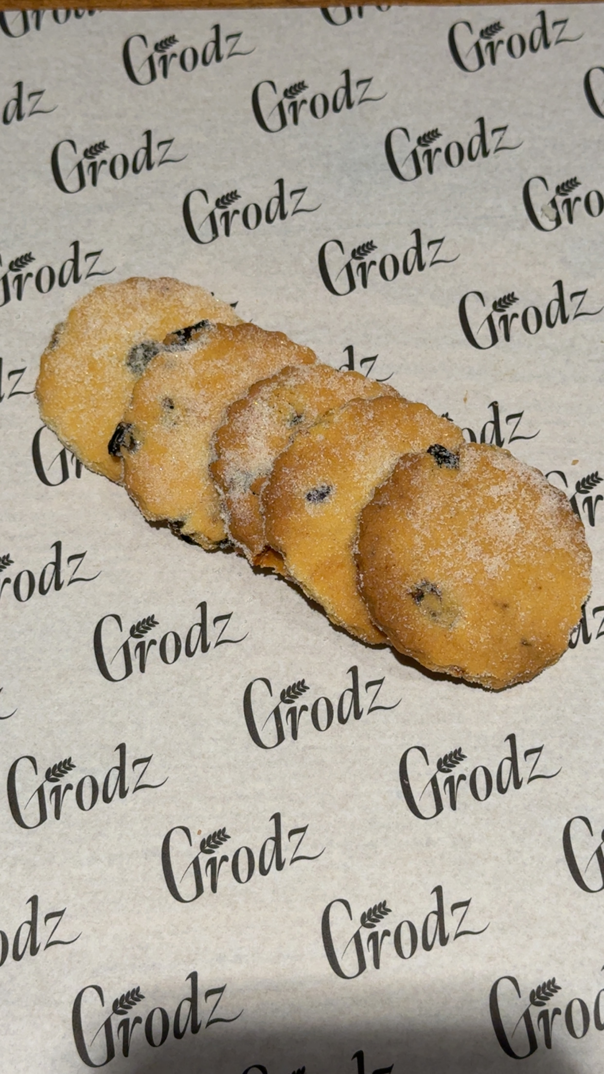 Parve . Ingredients: vegetable margarine [vegetable oils and fats, (palm, coconut, sunflower, in varying proportions), (palm, rapeseed, in varying proportions), water, salt (0.5%), emulsifier (E471, lecithin), acid, (citric acid), preservative (E202), flavouring, colour (carotenes)], sugar, EGG, rice, potato, tapioca, maize, buckwheat, vanilla, currants